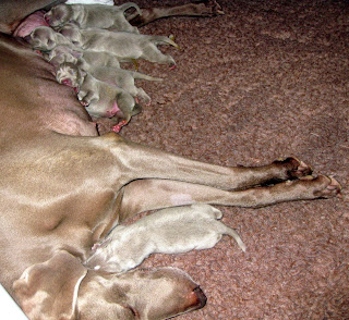 Puppies are becoming more vigorous both with movements in their nursing and moving in a swimming motion across the whelping bed.