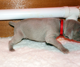 After a few wobbles and tumbles all pups found their legs abandoning the crawl in favor of walking around the whelping box, over each other including climbing Mom of course.